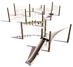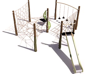 Our natural play range is an innovative way of connecting rope to natural timber, providing a subtle break between components without losing out on the benefits of continuous challenges available through play.