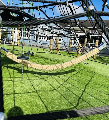 A 6m high Haemus Net is a key feature of the playground and encourages students to progressively play outside their comfort zone. Pause points at various heights allow children to build their confidence, with the ultimate goal to reach the top of the net. For those who want to stay and socialise at the base, a jungle rope offers interaction and opportunity to swing, clamber, and climb.