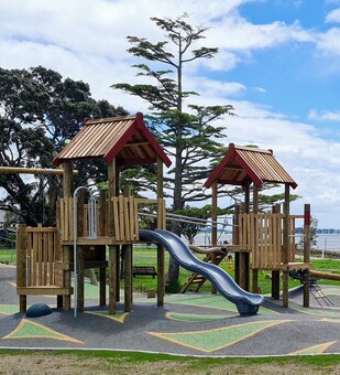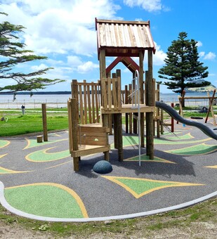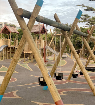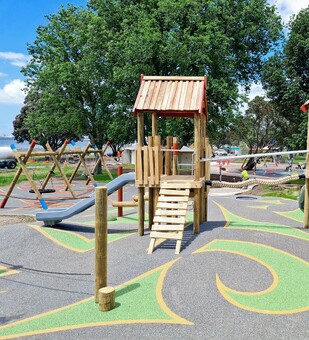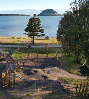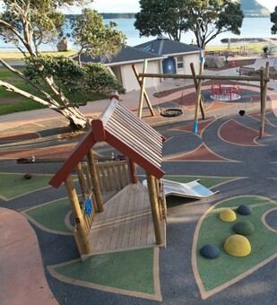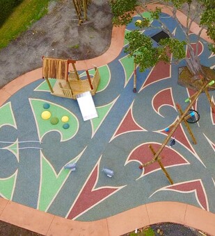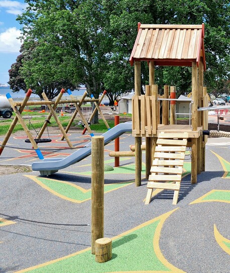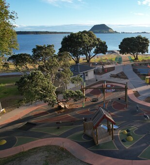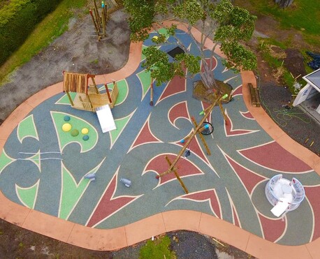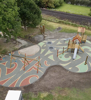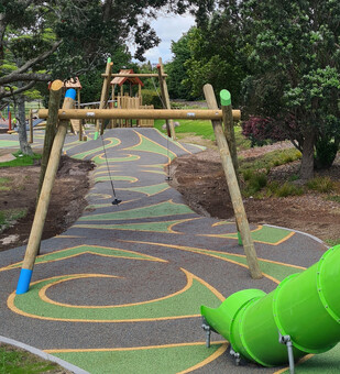 The Otūmoetai community, including Mana Whenua – Ngāi Tamarāwaho and Te Whānau a Tauwhao, played an important role in the design of the playground and were influential in sculpting the layout of the park, including the surface pattern which is a Ngāi Tamarāwaho design.