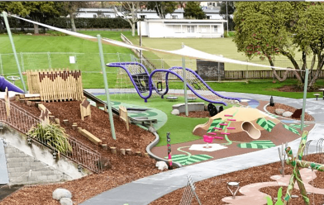 The Team: Client – Waipa District Council | Design – Brodie Hailwood | Construction – Fluhler Contracting | Surfacing – Team Turf, Playtop NZ | Playground Creations – Supply and Installation of Playground Equipment | Other playground suppliers were also involved.