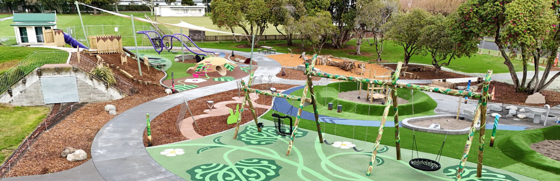 The Team: Client – Waipa District Council | Design – Brodie Hailwood | Construction – Fluhler Contracting | Surfacing – Team Turf, Playtop NZ | Playground Creations – Supply and Installation of Playground Equipment | Other playground suppliers were also involved.
