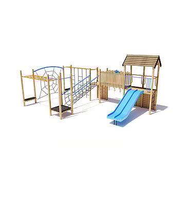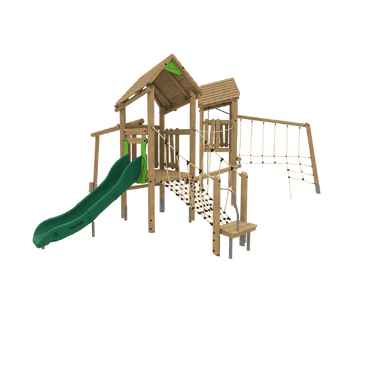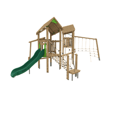 Our natural play range is an innovative way of connecting rope to natural timber, providing a subtle break between components without losing out on the benefits of continuous challenges available through play.