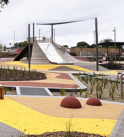 At the heart of this renewal is Stadium Reserve, a once underutilised site reimagined as a welcoming community destination for play, recreation, and gathering. Bespoke Landscape Architects led the design for the reserve, creating a multi-use green space that weaves play, sport, and social interaction together seamlessly.