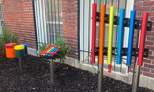 Vibrant in both colour and sound, these outdoor instruments encourage innovation, experimentation, and composition, both solo or as part of a band! Music as therapy can also reduce stress and anxiety, improve mood, and encourage self-expression.