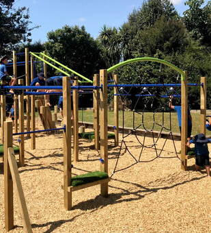 Playground Creations listened carefully and responded, with equipment to meet all these requests. Spider web, pommel crossing, slide, ladders and ropes are among the wide range of products providing for activity and social interaction all in one. Natural timbers combine with Puahue School colours to foster a sense of playfulness and fun.