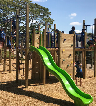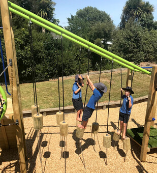 Hence Puahue School’s brief for their new playground was based on the concept of sustainability – a way of being and acting that nurtures people and nature, now and in the future. The play area needed to be packed with play value – balance, climbing, strengthening, slides and overhead activities – while being robust and having little ongoing maintenance.