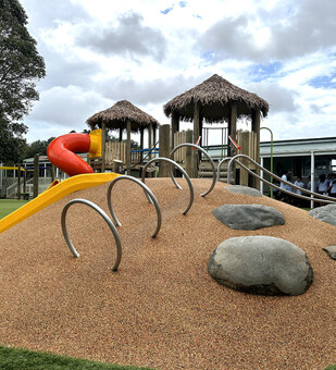 Sutton Park School in South Auckland wanted a playground their Tamariki could connect with. Reflecting the strong Pasifika community, a themed playground that connected the school grounds to its very own mini Mangere mountain was the starting point for this play space.