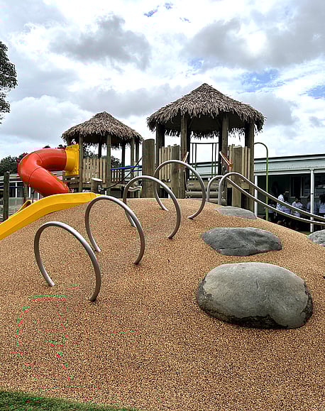 Sutton Park School in South Auckland wanted a playground their Tamariki could connect with. Reflecting the strong Pasifika community, a themed playground that connected the school grounds to its very own mini Mangere mountain was the starting point for this play space.