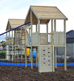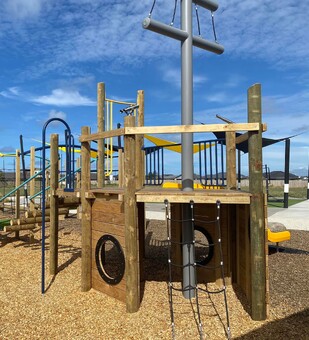 The senior playground was designed and completed in 2024 and aims to challenge older Tamariki, so climbing apparatus in the form of rock walls, bars, and ladders were incorporated into the design, as was a zipline, basket swing, climbing net, and the favourite tube slide.