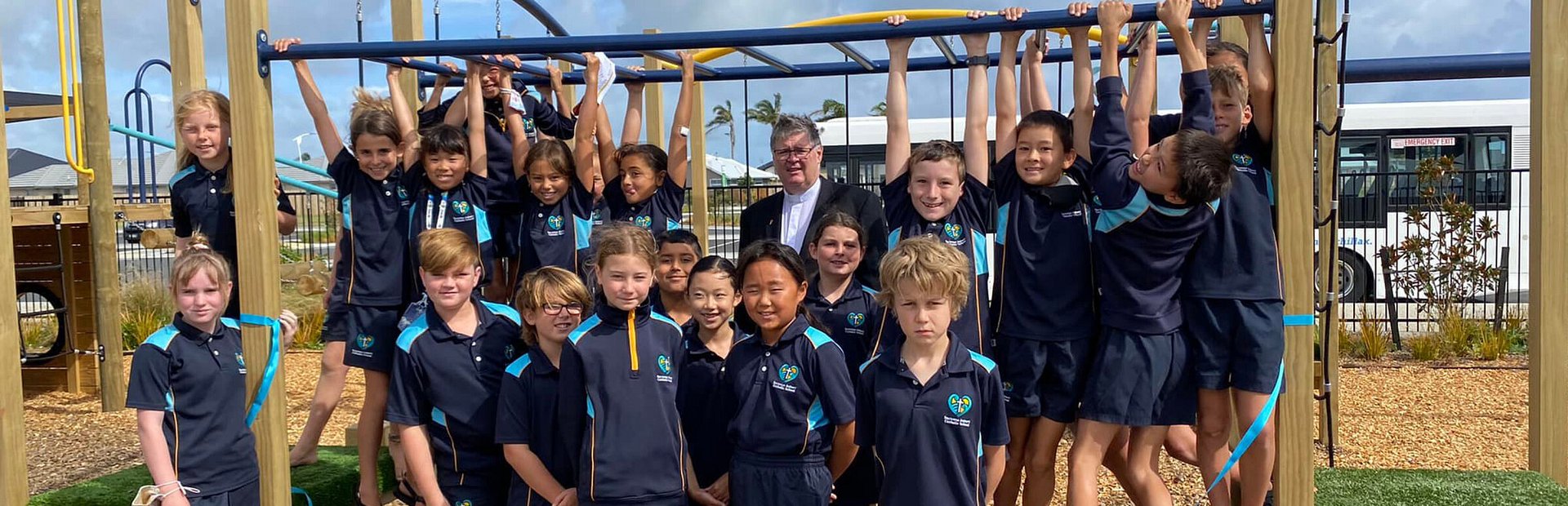 To engage, inspire and empower through Christ is the vision for learning at Suzanne Aubert Catholic School in Papamoa. This vision along with the school's values (the 7Cs - Christlike, Compassionate, Connected, Courageous, Curious, Creative, Collaborative) provided the foundation that the Playground Creations team incorporated into the design of the school’s new playgrounds.
