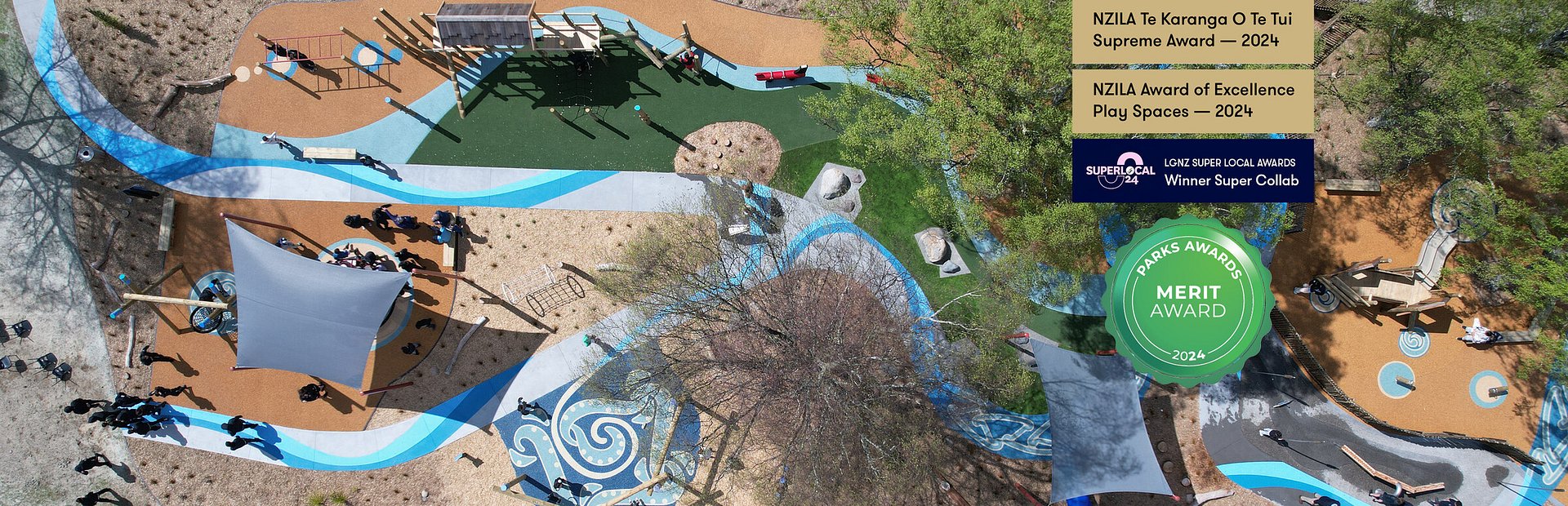 Playground Creations worked with project partners, including Bespoke Landscape Architects, local artist Te Maari Gardiner, and local carver, Te Ururangi Rowe, to weave cultural narrative into the papa tākaro (playground). Extensive engagement with the local community and nearby kura was also an integral part of the project.