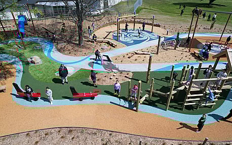 Stories of the tangata whenua underpin each play area. Tūmoana, an old fishing ground is represented in the hīnaki (fishing trap) inspired play equipment, while the water play area signifies the Hīrangi stream which once ran through the land. This ensures the papa tākaro is not only a playground but a learning environment for tamariki and whānau as well.