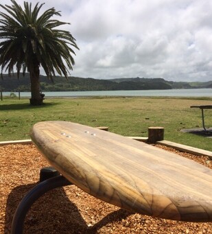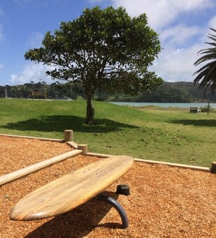 A senior playground located close to the skate park provide challenges, and includes swings and Raglan’s very own crafted wooden surfboard balance. There is a space for younger children to explore, including a pre-school playground, climbing net and toddler swings.