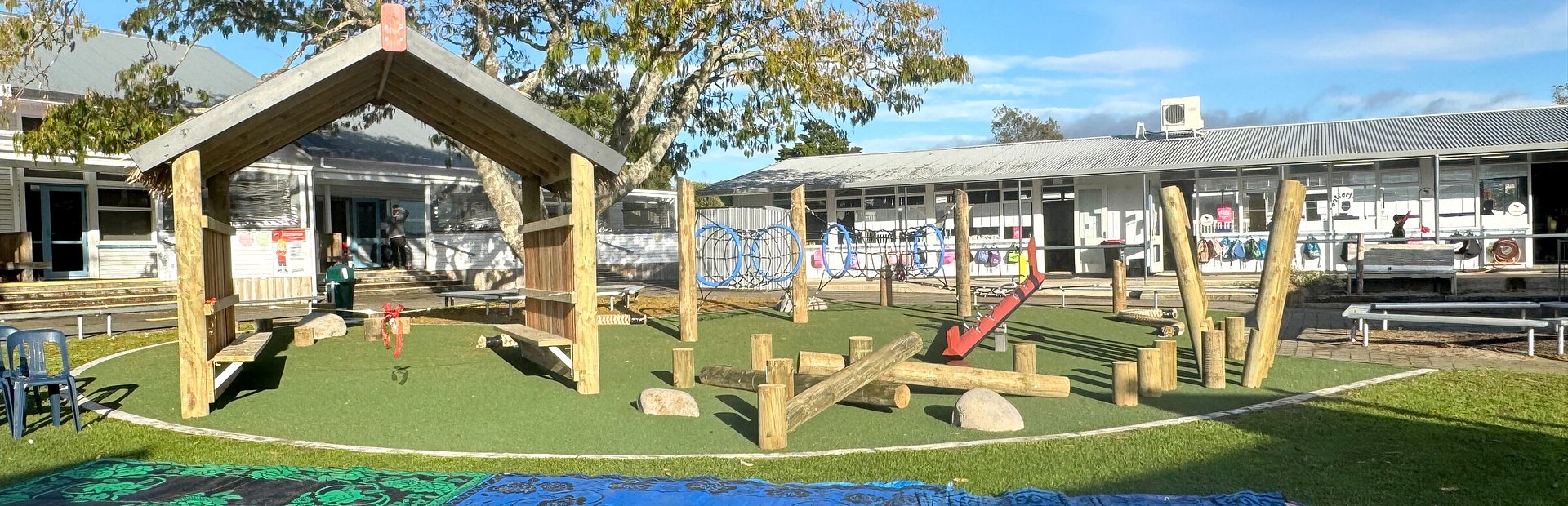 Wharenui – a key feature of the playground is the Wharenui, a structure resembling a traditional meeting house. This element serves as a gathering point, fostering a sense of community and connection among the children.