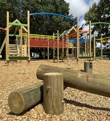 Tamariki from the local primary school were excited at the prospect of a new playground but wanted to ensure some of their favourite parts of the existing play space were kept. This included the big fort and slides. Our team welcomed the design challenge, incorporating a large, corrugated bridge linking the two fort areas… with corrugated roofs of course!